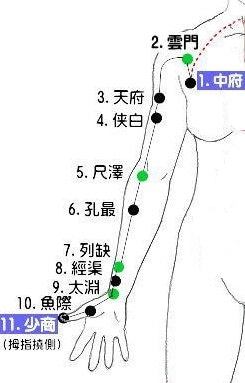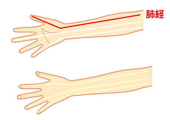 例を挙げますと、十四経の中に、下記のイラスト、肺経という道筋があります。経穴(ツボ)は11個(両側ですと22個) ほどありますが、そのツボを覚える事が重要なのではなく、働きやどんな特徴があるのかを知ることです。 同じ新幹線でも、東海道本線と東北本線では風景も大きく異なります。 経絡も同じことです。 ◆手の太陰肺経 (LU) (11穴) ❶ 胃の辺り、中焦(中脘)から起こり、大腸へ(水分)下行し、再び胃の上に上行(上脘)、横隔膜を貫いて、 両肺から喉、気管を経て、横に出て中府に行き、腋窩から腕の橈側を通り、拇指の橈側、小商で終わる。 ❷支脈: 列欠から手背を通って第2指の撓側、商陽へ行き、手の陽明大腸経と交わる。 ![]() この経絡はお腹から始まっています。走行といいます。 胃から始まり、下へ下がり大腸へ、そしてまた胃の上の方へと行き、横隔膜を貫いて、両肺を巡って、気管、のどを通り、 脇の下へと続きます。脇は心臓と関わっています。 ①「胃」から順番に手を当てて「脇の下(心臓)」までを感じて下さい。 覚え方はと言いますと、手の平を使い、まず、お腹に当てて見て下さい。胃の辺りですが、直ぐには離さずに しばらく手をそこに置いて感じて下さい。最後に胸に触れて、心臓の鼓動を感じて見て下さい。 ![]() → → → → →表面にでます。 生命の鼓動を感じますか? 今申し上げた所は、経絡が内臓を巡っている所だけです。これから表面に経絡は顔を出します。 四指を使い、その通り道を辿ってみて下さい。 柔らかい所や少し硬い所など様々な表情をしていることに気づくはずです。 ![]() 14本あるそれぞれの経絡は、同様にして感じて行くことが出来るようになりますと、覚えることが容易になります。 ●大腿部などにある経絡は拇指または四指を使い、滑らせながら辿って行きましょう。 ツボを覚えたい? 初心者はツボを覚えたいと思うでしょう。 それはツボに何か不思議な力があると勘違いしているからでしょう。 幾つかのツボはそんな不思議さを秘めていることは確かです。 初めに経絡ありきです。 経絡(道筋)を覚える事が大切なのです。 それを例えるなら、道路を作ってから、停留所を定めたのです。停留所を作ってから道路を定めたのではありません。 それをしっかり頭に叩き込んで置いて下さい。 まず、人に触れて、感じる、その感覚を磨かなければ治療には使えません。その中で初めてツボの存在が明らかになります。 身体というものは不思議ですが、本人が気づかない身体の変化や異常がある場合、外部へ訴えかけてきます。 ですから他の人が見て、何かおかしいぞー???と感じます。 感覚の優れた人でしたら、触れることもなく、ここがおかしいと的確にその場所までも言い当てる事でしょう。 その変化を察知して対応することが治療なのです。 長年の経験から患者さんに触れて、感じることの大切さを知っています。 実際に施術をやって行くうちに必要なツボも少しずつ覚え、増えて行きますから、そう焦ることはありません。 1)まず経絡を覚える(内臓から表面に走行していることを学ぶ) 2)虚実を見極め、補瀉を自在に使う。 WHOでのツボは361穴、昔は一年と同じ365穴と習いました。 すぐにツボを覚える必要は無いですが、どうしても覚えたいのでしたら、経文の様に、繰り返し繰り返し声に出して言うことです。 これが一番です。 その時に大切なことは、重要なツボは少し大きな声で言うことです。 それで記憶に焼き付けます。 中府、雲門、天府、侠白、尺沢・・・・・などです。 ![]() ツボの正しい取穴法 一つ、例を挙げますと、正営というツボが頭部に2か所ありますが、正しく取穴する場合、下の文章の通りに取穴しても、 決して正確な取穴とは言えません。 正しい位置ではなく、あくまで基準点ですと言いたいのです。 何故なら、ツボの位置は人によりそれぞれ、多少ですが異なるからです。 それはすべてのツボに言えることです。 そのために手指の感覚が大切になってきます。どうかそれを心に留めて置いて下さい。 感覚を磨くには、合掌行気が良いでしょう。 ちなみに私はやりたい時にだけやります。それも5分程度です。 初心者は休みながらでも良いですから10~20分程度なさってみて下さい。 ◆ 手の感覚に頼ることが一番重要で間違いは無いです。 施術では手に限らず、感覚を使って、感じたことを大切になさって下さい。 ● 一つの例 正営 ![]() 正営(しょうえい)胆17 頭部、前髪際から入ること2寸5分、瞳孔の直上。 取穴部位:頭臨泣穴の後2寸、目窓穴の後1寸 筋肉:帽状腱膜 知覚神経:眼窩上神経 血管:眼窩上動脈、後頭動脈 主 治:頭痛、目眩、歯痛 意 味:正は、正しい、営は、営むの意。すなわち目の疾患を正しく治め整えるの意。 ![]() |