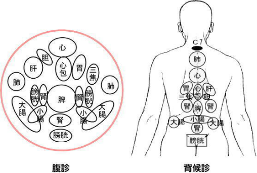 反応部位 ●肺経:腹部:左右季肋下部の最外端。 背部:胸椎1~3とその周辺。 ○大腸経:腹部:そけいに沿った部位で腰に手を当てた時の拇指と他の四指の端が位置する所。 背部:腰の両側。 〇胃経:腹部:左季肋下中央から臍にかけて。 背部:胸椎7,8の左肩甲下。 ● 脾経:腹部:臍を囲む中央部。 背部:胸椎10~12の周囲。 ●心経:腹部:心窩部。 背部: 胸椎4~6の周辺。 ○小腸経:腹部: 膝から左右そけい部までの腸骨動脈に沿った8の字の部位。 背部: 腰椎1,2と左右浮肋骨の先端までの腰のくびれ部分。 ○膀胱経: 腹部:恥骨の上部から左右へU字型に腎の外側部に反応がある。 背部 :第五腰椎から仙骨とその周辺。 ●腎経:腹部 :臍下丹田から左右腹直筋に沿って脾を包んだ形に反応がある。 背部 :胸椎3、4とその左右及び胸椎10~12の脾の外側。 ●心包経:腹部 :心窩とへその中間、腹大動脈の拍動部を感じる所。 背部 :胸椎7~9の周辺 ○三焦経:腹部 :左季肋下側方の脾臓の位置に反応。 背部 :胸椎8、9の左側。 ○胆経:腹部: 右季肋下中央。 背部: 胸椎8、9の右側 ●肝経: 腹部: 右季肋下中央。 背部: 胸椎7、8の右方を肩甲骨下にかけて。 参考文献