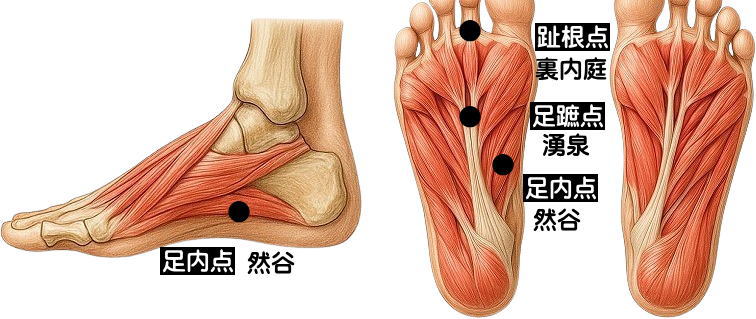 ★両足底から手の平(手掌)で下腿部、膝窩部※、大腿部を押圧して行きながら、筋肉の
